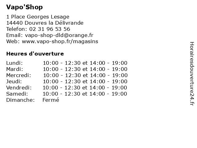 | Samedi | 10:00-12:30 et 14:00-19:00 |