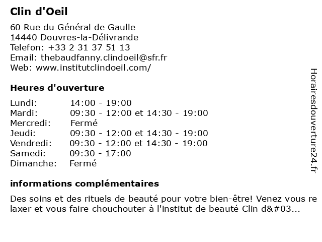 | Mardi | 09:30-12:00 et 14:30-19:00 |