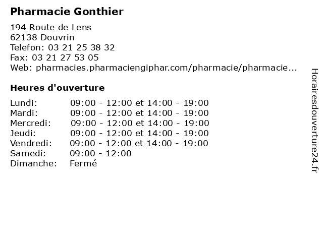 1 Pharmacie du Centre (Distance: 0,65 km) 19bis Rue Roger Salengro, 62138 Haisnes centre, cuna, du, médicaments, parapharmacie, pharmacie, rutkowski 2 Pharmacie de l'Eglise (Distance: 2,41 km) 15 avenue Jean Baptiste Lebas, 59480 La Bassée conseils, de, homéopathie, l'eglise, médicament, pharmacie 3 Pharmacie de l'Eglise (Distance: 2,41 km) 15 avenue Jean-Baptiste Lebas, 59480 La Bassée de, homéopathie, l'eglise, médicaments, orthopédie, parapharmacie, pharmacie 4 Pharmacie des Augustins (Distance: 2,45 km) 40 Rue du Général Leclerc, 59480 La Bassée augustins, conseils, des, homéopathie, médicament, pharmacie 5 Pharmacie de la Mairie (Distance: 3,56 km) 23 Rue Jules Guesde, 62410 Wingles de, la, mairie, pharmacie, services 6 Pharmacie Broutin (Distance: 5,08 km) 31 Rue Arthur Lamedin, 62980 Vermelles broutin, pharmacie, services |