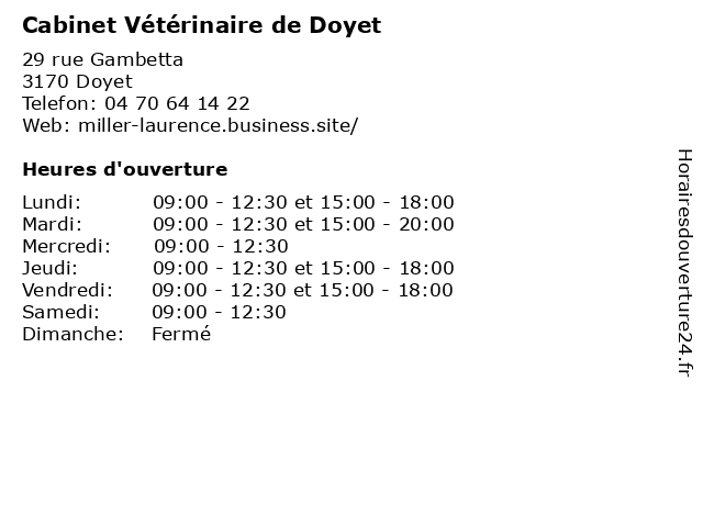 | Vendredi | 09:00-12:30 et 15:00-18:00 |
