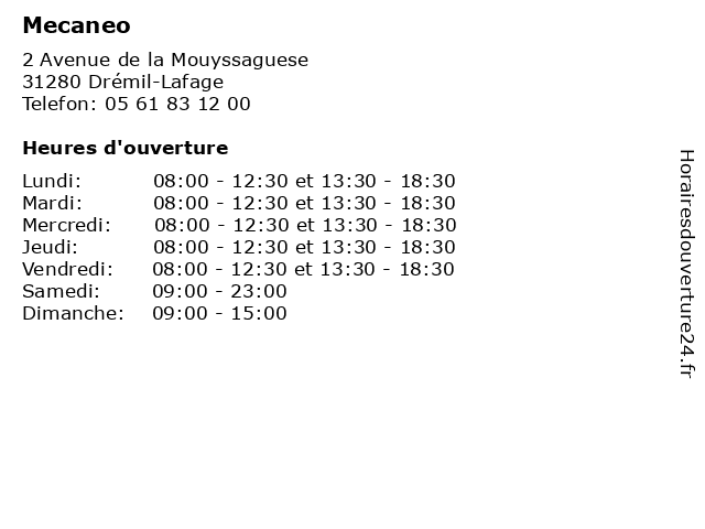 Lundi | 08:00-12:30 et 13:30-18:30 |