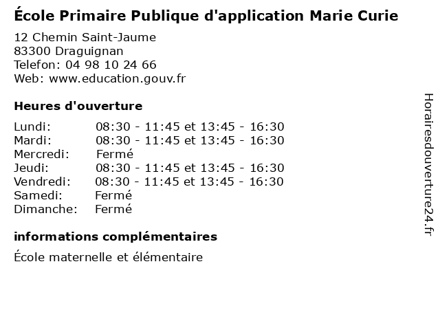 1 École élémentaire application Jules Ferry 1 (Distance: 0,21 km) 88 Avenue Alphonse Gilet, 83300 Draguignan application, cours, ferry, jules, servicios, école, élémentaire 2 École Primaire Publique d'application Jules Ferry 1 (Distance: 0,22 km) 88 Avenue Alphonse Gilet, 83300 Draguignan cours, d'application, education, ferry, jules, primaire, publique, services, école 3 École élémentaire application Jean Giono (Distance: 0,79 km) . Traverse Bernard Trans, 83300 Draguignan application, cours, giono, jean, servicios, école, élémentaire 4 École Primaire Publique d'application Jean Giono (Distance: 0,91 km) - Traverse Bernard Trans, 83300 Draguignan cours, d'application, education, giono, jean, primaire, publique, services, école 5 École Maternelle Publique d'application Jean Giono (Distance: 0,98 km) 33 Avenue Lazare Carnot, 83300 Draguignan cours, d'application, education, giono, jean, maternelle, publique, services, école 6 École Maternelle Publique d'application Paul Arène (Distance: 1,72 km) . Rue Paul Arène, 83300 Draguignan arène, cours, d'application, education, maternelle, paul, publique, services, école |