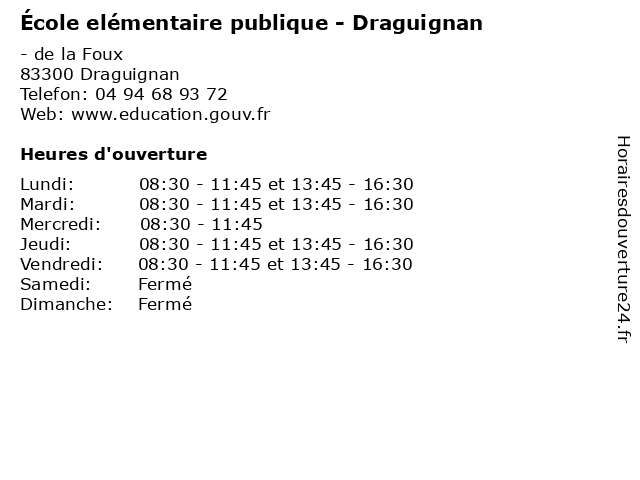 | Mardi | 08:30-11:45 et 13:45-16:30 |