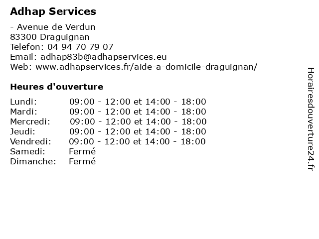 5 ADHAP L'aide à domicile - Antibes (Distance: 52,39 km) 50 Avenue Robert Soleau, 06600 Antibes accompagnement, adhap, aide administrative, aide à domicile, aide à la toilette, aide à la vie quotidienne, antibes, apa, auxiliaire de vie, compagnie, courses, domicile, handicap, l'aide, ménage, pch, personne âgée, promenades, repas, services à domicile, sortie d'hospitalisation, transport, évaluation des besoins 6 Domidom (Distance: 0,00 km) . Avenue de Verdun, 83300 Draguignan aide à domicile, alzheimer, domidom, dépendance, medical, services |
