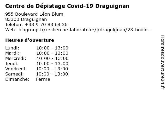 1 Centre de Vaccination COVID-19 - Complexe Saint-Exupéry (Distance: 1,34 km) - Place de la Paix, 83300 Draguignan 19, centre, complexe, covid, covid 19, covid19, de, exupéry, médecin, médecine, médical, saint, test, vaccin, vaccination, vaccins 2 Centre de Vaccination COVID-19 - CH de la Dracénie (Distance: 3,03 km) - Avenue Montferrat, 83300 Draguignan 19, centre, ch, covid, covid 19, covid19, de, dracénie, la, médecin, médecine, médical, test, vaccin, vaccination, vaccins 3 Kantysbio - Laboratoire de biologie médicale (Distance: 1,08 km) 65 Avenue du Général Charles de Gaulle, 83300 Draguignan analyse, biologie, de, kantysbio, laboratoire, médicale, prelevement, soins 4 Aprium Pharmacie des Héllènes (Distance: 1,29 km) 139 Avenue Hélène Vidal, 83300 Draguignan 83300, aprium, aromathérapie, beauté, compléments alimentaires, covid-19, des, draguignan, homéopathie, hygiène orale, héllènes, matériel médical, médicaments, orthopédie, parapharmacie, pharmacie, pharmacie bio, produits vétérinaires, test antigéniques, vaccination, équipements médicaux 5 BS CONSULTE (Distance: 37,32 km) 228 Chemin de Gigeri, 83170 Brignoles analyse des risques professionnels, bs, conseils hygiène et sécurité des entreprises, consulte, document unique, mesures bruits vibrations lumière poussière, prévention des risques professionnels 6 Dr Dominique Neri-Schiavini - Médecin Biologiste (Distance: 42,09 km) 15 Avenue des Broussailles, 06414 Cannes analyse, biochimie, biochismiste, biologie, biologiste, cannes, centre, de, dominique, dr, hospitalier, médecin, neri, schiavini |