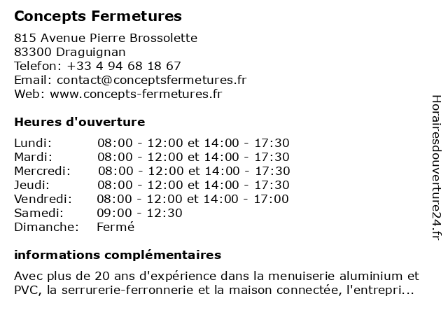 | Lundi | 08:00-12:00 et 14:00-17:30 |