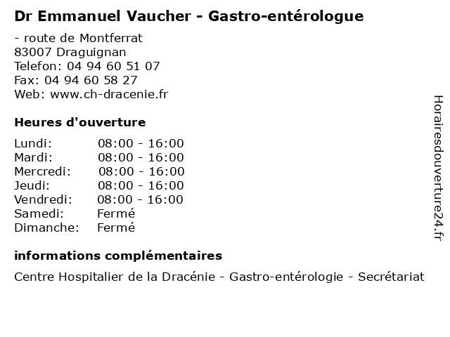 1 Dr Anda Itu - Gastro-entérologue (Distance: 0,00 km) - route de Montferrat, 83007 Draguignan anda, cancer, cancérologie, dr, entérologie, entérologue, gastro, itu 2 Dr André Matteo - Gastro-entérologue (Distance: 0,00 km) - route de Montferrat, 83007 Draguignan andré, cancer, cancérologie, dr, entérologie, entérologue, gastro, matteo 3 Dr Catherine Cadot - Gastro-entérologue et hépatologue (Distance: 0,00 km) . Route de Montferrat, 83300 Draguignan cadot, catherine, docteur, dr, entérologue, et, gastro, hépatologue, medecin, sante, services 4 Dr Nabil Zeboudj - Gastro-entérologue et hépatologue (Distance: 0,00 km) - route de Montferrat, 83007 Draguignan consultation, docteur, dr, entérologue, et, gastro, hépatologue, med, médecin, nabil, traitement, zeboudj 5 Dr Marc Emmanuel Termonia - Médecin généraliste (Distance: 1,08 km) - Boulevard des Cyprès Bleus, 83300 Draguignan docteur, dr, emmanuel, generaliste, généraliste, marc, medical, médecin, soin, termonia 6 Dr Emmanuel Guilbaud - Médecin généraliste (Distance: 1,17 km) 8 Boulevard du Marechal Joffre, 83300 Draguignan docteur, dr, emmanuel, generaliste, guilbaud, généraliste, medecin, médecin, soins |