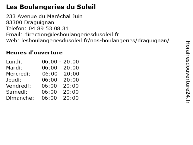 | Dimanche | 06:00-20:00 |