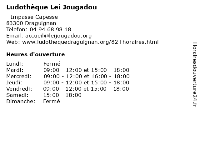| Mardi | 09:00-12:00 et 15:00-18:00 |