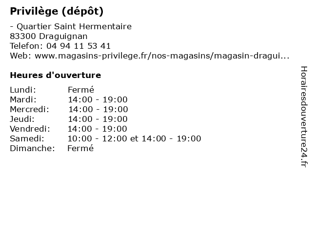 | Samedi | 10:00-12:00 et 14:00-19:00 |