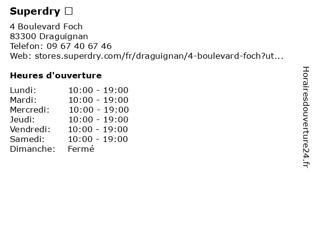 1 2 Superdry Store (Distance: 26,82 km) 851 Boulevard D’Alger, 83600 Fréjus mode, mode femmes, mode hommes, shopping, store, superdry 3 Superdry (Distance: 29,10 km) 26 rue de verdun, 83120 Sainte Maxime accesoires, boutiques, mode, superdry, vetements 4 Superdry Store (Le Grand Passage) (Distance: 32,91 km) 6 Rue Allard, 83990 Saint-Tropez grand, le, mode, mode femmes, mode hommes, passage, shopping, store, superdry 6 |