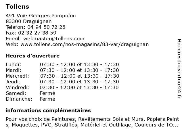 | Lundi | 07:30-12:00 et 13:30-17:30 |
