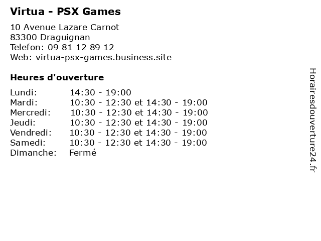 | Samedi | 10:30-12:30 et 14:30-19:00 |