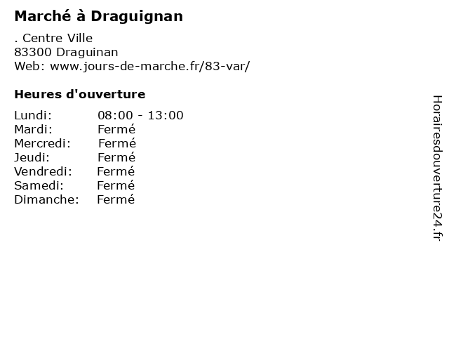 1 Marché provençal à Draguignan (Distance: 0,00 km) . Centre Ville, 83300 Draguinan draguignan, frutas, hortalizas, marché, mercado, provençal, verduras 2 Marché à Fréjus (Distance: 0,03 km) . Ville, 83370 Fréjus frutas, fréjus, hortalizas, marché, mercado, verduras 3 Marché à Antony (Distance: 1,37 km) . Avenue Division Leclerc, 92160 Antony antony, des, frutas, halles, hortalizas, marché, mercado, suresnes, verduras 4 Marché à Samoëns (Distance: 2,77 km) . Ville, 74340 Samoëns frutas, hortalizas, marché, mercado, samoëns, verduras 5 Marché à Thenon (Distance: 3,02 km) . ville, 24210 Thenon frutas, hortalizas, marché, mercado, thenon, verduras 6 Marché Sud à Fresnes (Distance: 3,44 km) . Avenue Paul Vaillant Couturier, 94260 Fresnes fresnes, frutas, hortalizas, marché, mercado, sud, verduras |