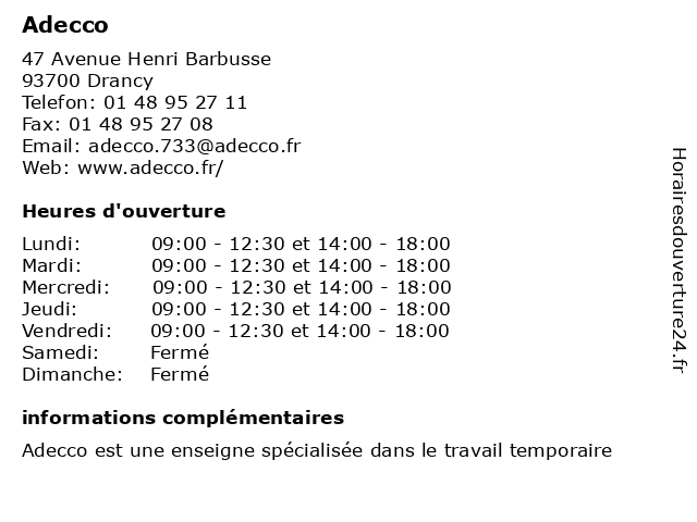 | Lundi | 09:00-12:30 et 14:00-18:00 |