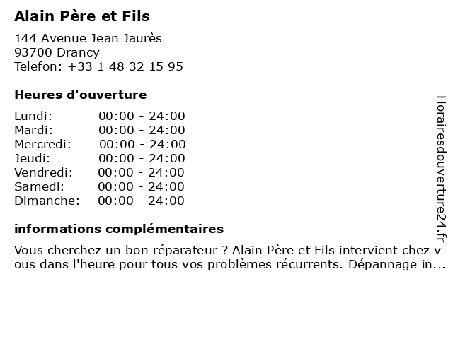 1 Alain Père et Fils (Distance: 3,70 km) 140 Avenue du Général Leclerc, 93500 Pantin alain, et, fils, père 6 |