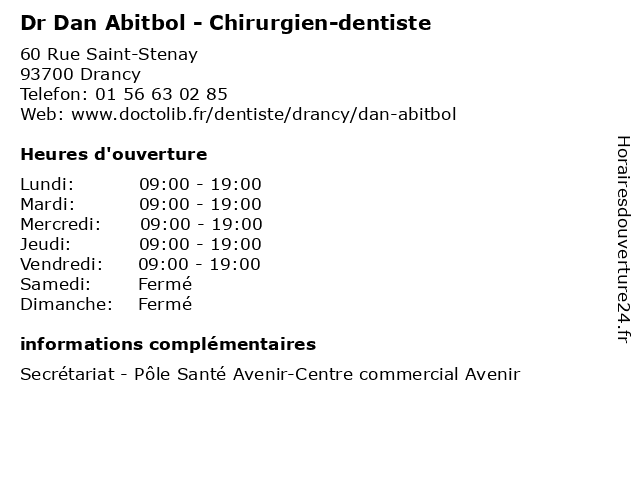1 Dr Giorgiana Dan Dina - Chirurgien-dentiste (Distance: 1,29 km) 240 Rue de Stalingrad, 93700 Drancy beam, centre, chirurgien, cone, dan, dentiste, dina, dr, giorgiana, panoramique, radio, sante 2 Dr Dan Michaloux - Rhumatologue (Distance: 3,17 km) 55 rue Henri Barbusse, 93300 Aubervilliers adrian, consultation, dan, docteur, dr, michaloux, rhumatologie, rhumatologue, santé 3 Alexandru Mitrica Dan - Chirurgien-dentiste (Distance: 4,61 km) 22 Rue Auguste Polissard, 93140 Bondy alexandru, chirurgien, dan, dent, dentiste, docteur, mitrica, soins 4 Dr Dan Israel - Chirurgien de la main (Distance: 4,95 km) 1 Rue Gabriel Péri, 93200 Saint-Denis chirurgie, chirurgien, dan, de, doigt, dr, espace, france, israel, la, main, poignet, ressaut, santé, sport, stade, traumatologie 5 Dr Dan Bismuth - Médecin généraliste (Distance: 5,10 km) 150 Rue Sadi Carnot, 93170 Bagnolet bismuth, dan, docteur, dr, generaliste, généraliste, medical, médecin, soin 6 Dan Chekroun - Ostéopathe (Distance: 5,18 km) 77 Rue Louis Auguste Blanqui, 93140 Bondy actes et symptômes, chekroun, dan, expertises, ostéopathe, ostéopathie pédiatrique, ostéopathie viscérale |