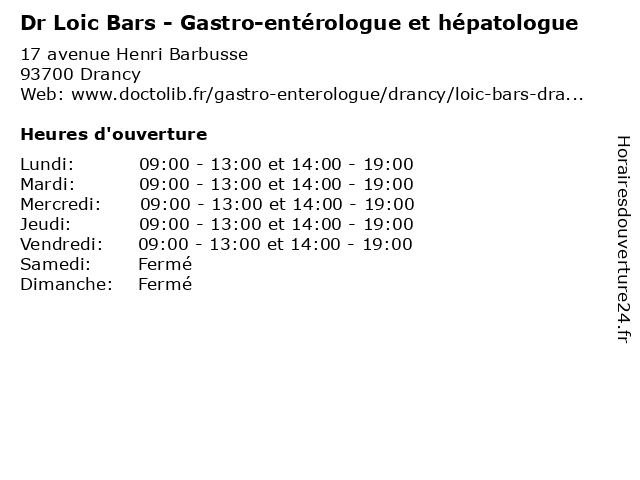 | Lundi | 09:00-13:00 et 14:00-19:00 |