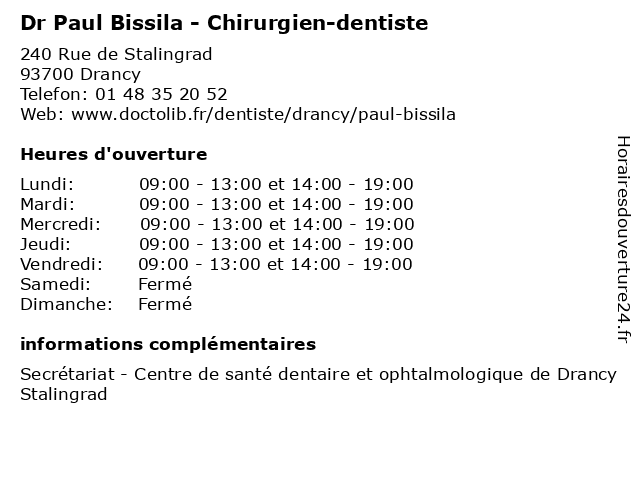 1 Paul (Distance: 0,38 km) 60 rue Saint Stenay, 93700 Drancy avenir, boulangerie, centre, commercial, drancy, paul, pâtisserie, restauration 2 Dr Paul Bissila - Chirurgien-dentiste - secrétariat (Distance: 1,85 km) 19 Avenue Henri Barbusse, 93700 Drancy bissila, chirurgien, consultation, dentiste, docteur, dr, med, médecin, médecine, paul, secrétariat, traitement 4 PAUL (Distance: 3,42 km) 23 Rue Madeleine Vionnet, 93300 Aubervilliers alimentation, beauté & sante, culture & loisirs, enfants, high-tech, maison & déco, mode, paul, restaurants 5 Médiathèque Paul Eluard (Distance: 3,54 km) 30 Rue Gaëtan Lamy, 93300 Aubervilliers bibliothèque, eluard, livre, médiathèque, paul, services 6 Médiathèque Paul Eluard (Horaires vacances scolaires) (Distance: 3,54 km) 30 Rue Gaëtan Lamy, 93300 Aubervilliers bibliothèque, eluard, horaires, livre, médiathèque, paul, scolaires, services, vacances |