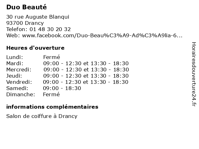| Mardi | 09:00-12:30 et 13:30-18:30 |