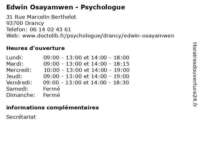 Lundi | 09:00-13:00 et 14:00-18:00 |