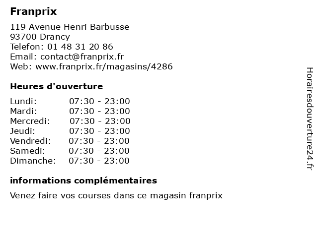 1 Franprix (Distance: 1,14 km) 15 Promenade Jean Rostand, 93000 Bobigny bibi, carte de fidélité, courses, franprix, magasin, produits frais, programme de fidélité, supermarché, épicerie 2 Franprix (Distance: 1,24 km) 15 promenade Jean Rostand, 93000 Bobigny alimentation, epicerie, franprix, supermarché 3 Franprix (Distance: 1,24 km) 192-196 Avenue Paul Vaillant Couturier, 93150 Le Blanc-Mesnil alimentation, epicerie, franprix, supermarché 4 Franprix (Distance: 1,40 km) 203 Avenue Jean Jaurès, 93000 Bobigny alimentaire, alimentation, courses, franprix, magasin, supermarché, supérette, épicerie 5 Franprix (Distance: 2,86 km) 130-138 av. Pasteur, 93150 BLANCMESNIL alimentation générale, entretien de la maison et de l'hygiène, franprix, franprix magasin, fruits et légumes frais 6 Franprix (Distance: 2,93 km) - rue Georges Guynemer, 93440 Dugny alimentaire, alimentation, courses, franprix, supermarché, supérette, épicerie |
