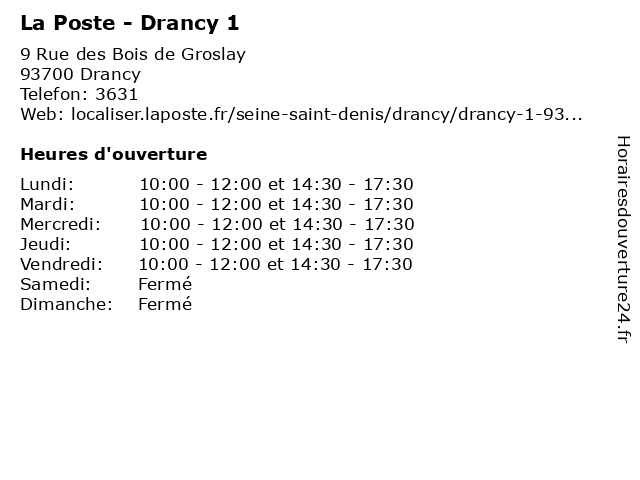 Termes de recherche pour La Poste - Drancy 1:poste, relais, la, drancy, agence, postale, colis, expédition, courriers |