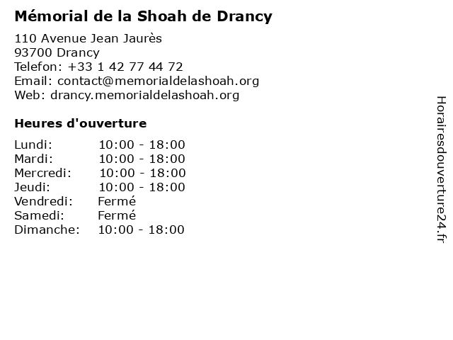 1 Mémorial De La Shoah (Distance: 10,03 km) 17 Rue Geoffroy l'Asnier, 75004 Paris de, la, mémorial, shoah 2 Fondation pour la Mémoire de la Shoah (Distance: 11,25 km) 10 avenue Percier, 75008 Paris aide, de, fondation, juive, la, lutte, mémoire, pour, shoah 3 Crématorium et Parc mémorial du Val d'Oise (Distance: 28,70 km) 35 Avenue de Verdun, 95310 Saint-Ouen-l'Aumône crématorium, d'oise, du, et, mémorial, parc, val 4 B&B Hôtel Caen Mémorial (Distance: 47,14 km) . Rue du Clos, 14280 Saint b&b, bar, caen, hotel, hôtel, mémorial, restaurant, service 5 Mémorial de l'internement et de la déportation-Camp de Royallieu (Distance: 59,89 km) 2 bis avenue des Martyrs de la Liberté, 60200 Compiègne , camp, de, déportation, et, exposition, l'internement, la, musée, mémorial, royallieu, visite |