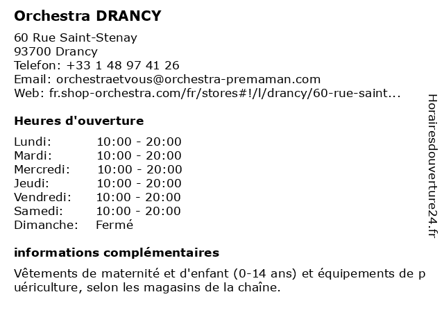 Termes de recherche pour Orchestra DRANCY:drancy, vêtements, mode, bebe, orchestra, enfant, premaman, puericulture, prêt à porter |