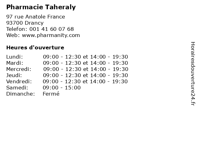 | Lundi | 09:00-12:30 et 14:00-19:30 |