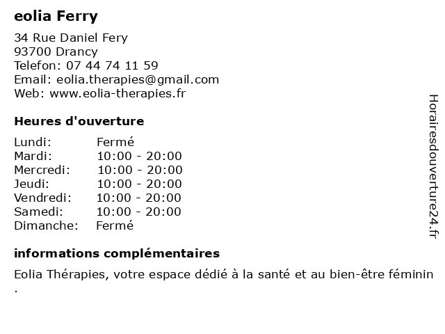 | Lundi | Fermé |