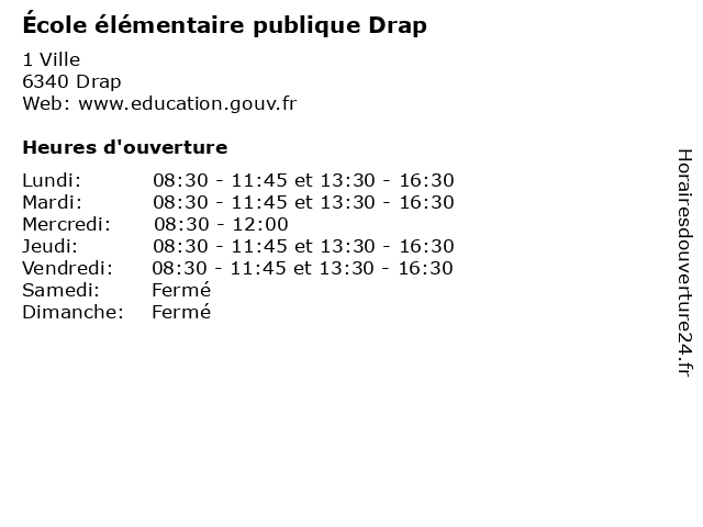 | Mardi | 08:30-11:45 et 13:30-16:30 |