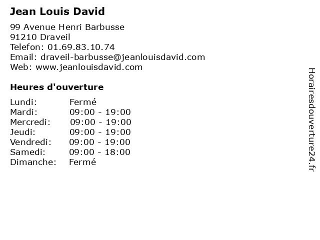 | 1 Jean Louis David (Distance: 8,97 km) 2 Place de l'Eglise, 94600 Choisy Le Roi beaute, coiffure, david, jean, louis 2 Jean Louis David (Distance: 9,99 km) . Ville de Bois, 91620 La Ville du Bois beaute, cafe, chaussures, david, enfants, hommes, jean, lingerie, louis, mode femmes, restaurant, sport 3 Jean Louis David (Distance: 14,38 km) 6 Rue des Remises, 94100 Saint Maur Des Fosses beaute, coiffure, david, jean, louis 4 Jean Louis David (Distance: 14,53 km) 3 Avenue du Général Leclerc, 94700 Maisons Alfort beaute, coiffure, david, jean, louis 5 Jean Louis David (Distance: 14,57 km) 20 Route Nationale, 91620 La Ville Du Bois cafe, chaussures, david, enfants, homme, jean, louis, mode femme, restaurant, service 6 Jean Louis David (Distance: 15,23 km) 95 Rue de Paris, 94220 Charenton Le Pont beaute, coiffure, david, jean, louis |