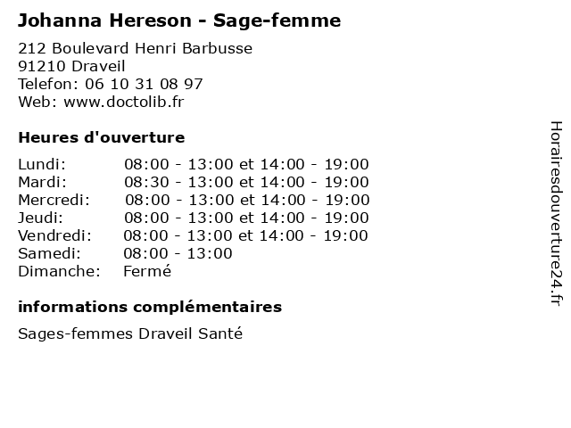 1 Johanna Hereson - Sage-femme - secrétariat (Distance: 0,59 km) 121 Boulevard Henri Barbusse, 91210 Draveil aide, bébé, bébés, femme, hereson, johanna, parturition, sage, sage-femme, secrétariat 2 Johanna Benhamou - Pédicure-podologue (Distance: 10,27 km) 12 Mail Saussure, 94000 Créteil benhamou, johanna, orthoplastie, podologue, pédicure, pédicurie 3 Johanna Latrobe - Ostéopathe (Distance: 17,16 km) 4 Avenue Victor Basch, 92170 Vanves actes et symptômes, expertises, johanna, latrobe, ostéopathe, ostéopathie de la femme enceinte, ostéopathie du sport 4 Johanna Flack - Psychomotricienne (Distance: 17,83 km) 49 Boulevard de Strasbourg, 94130 Nogent-sur-Marne développement, flack, johanna, psychomoteur, psychomotricien, psychomotricienne 5 Johanna Clemot - Masseur-kinésithérapeute (Distance: 17,89 km) 1 Rue Raymond du Temple, 94300 Vincennes clemot, johanna, kiné, kinésithérapeute, masseur, rééducation, soin 6 Dr Johanna Sekri - Chirurgien orthopédiste (Distance: 18,28 km) 184 Rue du Faubourg Saint-Antoine, 75012 Paris chirurgien, consultation, docteur, dr, johanna, med, médecin, orthopédiste, sekri, traitement |