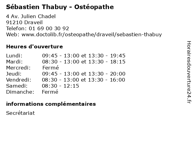 | Jeudi | 09:45-13:00 et 13:30-20:00 |