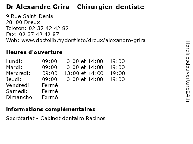 1 Dr Alexandre Fuzeau - Médecin généraliste (Distance: 20,23 km) 20 Rue du Maréchal Joffre, 27220 Saint-André-de-l'Eure alexandre, docteur, dr, fuzeau, generaliste, généraliste, medical, médecin, soin 2 Dr Alexandre Placente - Cardiologue (Distance: 31,59 km) 2 Rue Roland Buthier, 28300 Mainvilliers alexandre, cardio, cardiologie, cardiologue, coeur, dr, placente 3 Karine Alexandre - Avocate (Distance: 33,93 km) 425 rue Clément Ader, 27000 Évreux alexandre, avocate, droit, juridictionnelle, karine, négociation 4 Alexandre Gigleux - Sage-femme (Distance: 36,20 km) 4 rue Claude Bernard, 28630 Le Coudray alexandre, consultation, docteur, dr, femme, gigleux, med, médecin, sage, traitement 5 Dr Alexandre Henniart - Médecin généraliste (Distance: 36,20 km) 4 rue Claude Bernard, 28630 Le Coudray alexandre, consultation, docteur, dr, généraliste, henniart, med, médecin, traitement 6 Dr. Alexandre Marie-Angelique - Médecin généraliste (Distance: 37,85 km) 64 Bis Rue Noël Ballay, 28630 Fontenay-sur-Eure alexandre, angelique, docteur, dr., generaliste, généraliste, marie, medical, médecin, soin |