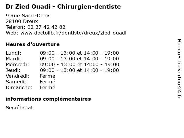 | Mardi | 09:00-13:00 et 14:00-19:00 |