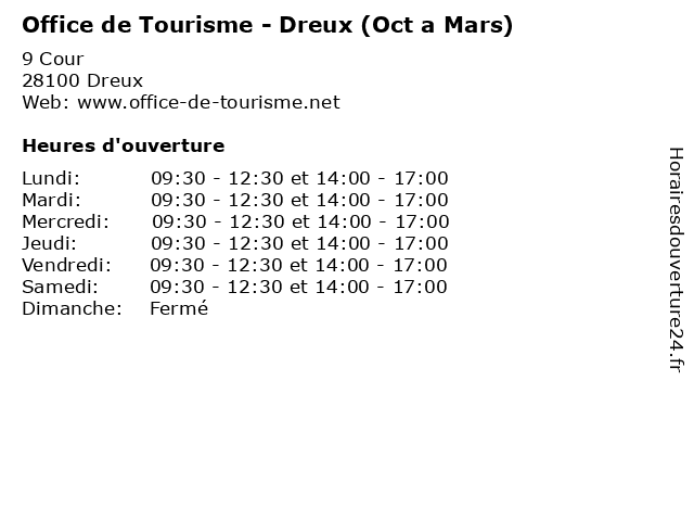 Termes de recherche pour Office de Tourisme - Dreux (Oct a Mars):de, services, mars, office, tourisme, dreux, bureaux, oct |