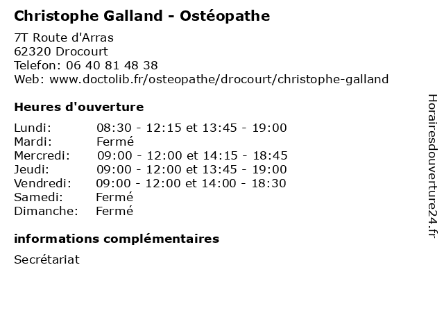 | Lundi | 08:30-12:15 et 13:45-19:00 |