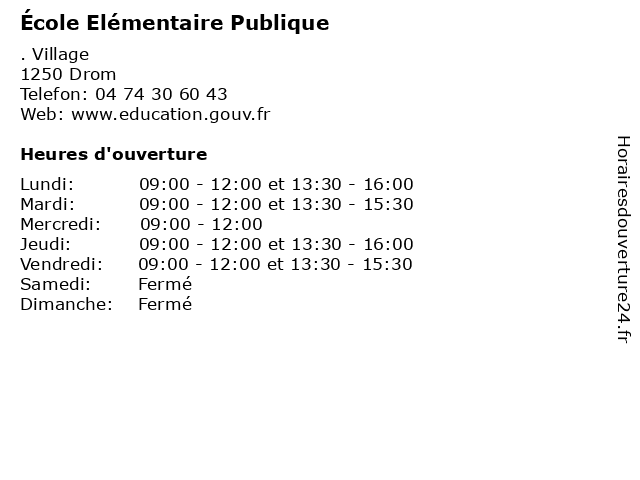 | Samedi | Fermé |