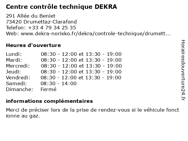 Description de l'entreprise :Préparer votre contrôle techniquePour préparer votre contrôle technique dans notre centre DEKRA de Drumettaz-Clarafond, vous pouvez vérifier en amont différents points comme les pneumatiques, la visibilité, le niveau d'huile ou encore l'habitacle. Pour tout savoir, consultez notre vidéo. Voir l'offre |