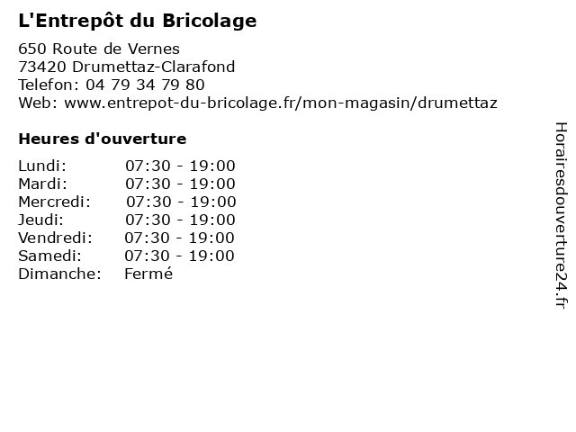 | Lundi | 07:30-19:00 |