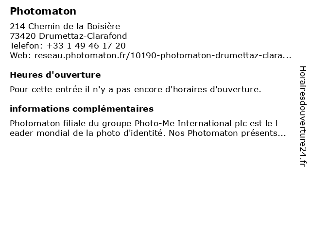 1 Photomaton (Distance: 1,62 km) Route du Lac, 73420 Viviers-du-Lac photomaton