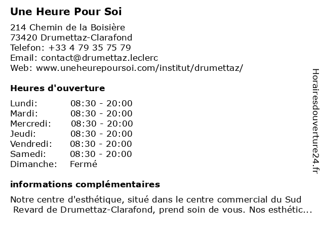 | Lundi | 08:30-20:00 |