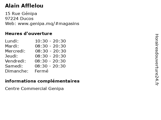 2 Dr Jean-Alain Acquarone - Médecin généraliste (Distance: 13,61 km) 30 Route de Ravine Vilaine, 97200 Fort-de-France acquarone, alain, consultation, docteur, dr, généraliste, jean, med, médecin, traitement 3 Dr Alain Vuillemenot - Cardiologue (Distance: 13,98 km) 4 Rue Des Hibiscus, 97200 Fort-de-France alain, cardiologue, consultation, docteur, dr, med, médecin, traitement, vuillemenot 4 Jules (Distance: 0,00 km) 15 Rue Génipa, 97224 Ducos beaute, cafe, femme, homme, jules, maison, mode, sport 5 Lacoste (Distance: 0,00 km) 15 Rue Génipa, 97224 Ducos beaute, cafe, femme, homme, lacoste, maison, mode, sport 6 Pimkie (Distance: 0,00 km) 15 Rue Génipa, 97224 Ducos beaute, cafe, femme, homme, maison, mode, pimkie, sport |