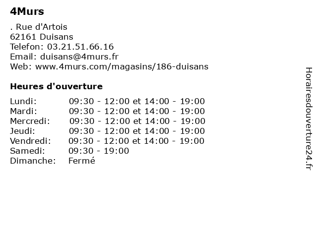 | Lundi | 09:30-12:00 et 14:00-19:00 |