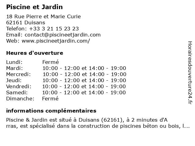 2 Piscine Aquarena - Espace Aquatique - Périodes scolaires (Distance: 5,36 km) 33 Boulevard Schuman, 62000 Arras aquarena, aquatique, bassins, espace, piscine, piscines, période, périodes, scolaire, scolaires, sports 3 Piscine Aquarena - Espace Forme & Océane - Périodes scolaires (Distance: 5,36 km) 33 Boulevard Schuman, 62000 Arras aquarena, bassins, espace, forme, océane, piscine, piscines, période, périodes, scolaire, scolaires, sports 4 Piscine Aquarena - Espace Balnéo - Périodes scolaires (Distance: 5,36 km) 33 Boulevard Schuman, 62000 Arras aquarena, balnéo, bassins, espace, piscine, piscines, période, périodes, scolaire, scolaires, sports 5 Piscine Aquarena - Espace Balnéo - Vacances scolaires (Distance: 5,36 km) 33 Boulevard Schuman, 62000 Arras aquarena, balnéo, bassins, espace, piscine, piscines, période, scolaires, sports, vacances 6 Piscine Aquarena - Espace Forme & Océane - Vacances scolaires (Distance: 5,36 km) 33 Boulevard Schuman, 62000 Arras aquarena, bassins, espace, forme, océane, piscine, piscines, période, scolaires, sports, vacances |