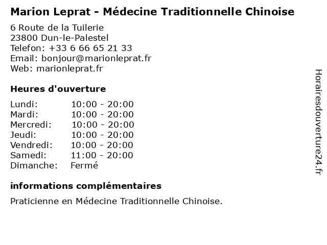 | Lundi | 10:00-20:00 |
