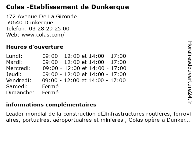 Termes de recherche pour Colas -Etablissement de Dunkerque:de, dunkerque, colas, etablissement, entreprise générale de construction |