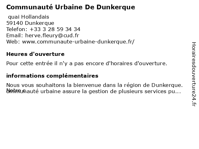 | Appeler Communauté Urbaine De Dunkerque | |